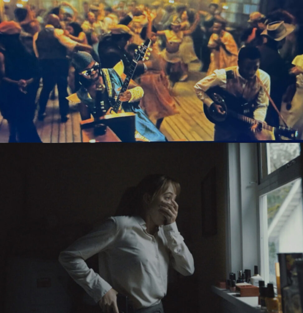 A pivotal point that takes place in Sinners is when Sammie is playing his guitar in the juke joint that Smoke and Stack set up, both played by Michael B. Jordan. As he plays his guitar and belts the song he wrote, he summons African American music artists from the past and the future. They all dance around creating a jaw dropping cinematic point in the film. As Sammie shares his music, he attracts Remmick, the leader of the vampire group that invades the juke joint. This is an important moment in the film because it is after this that the vampires kill all the people inside the juke joint. In Longlegs a pivotal point is the scene when Lee Harker (Maika Monroe), drives with a coworker to her moms house to further investigate the murders. Only to find Ruth/her mother dressed as a nun and witnesses her shoot Agent Browning (Michelle Choi-Lee) who was waiting in the car. At this point in the film, Harker realizes that her mother is Longleg’s accomplice and has been throughout her whole life. After this realization, Harker is fighting to save the last family but in order to do so she has to murder her own mother. This is the big reveal of the mystery they have been trying to solve for the entire movie. This point for the main character is when she realizes the external evil she has been trying to find and solve the whole time has been her own mother, turning her emotions inward. These are the two points in each film that changes everything for both Sammie (Sinners) and Lee Harker (Longlegs).