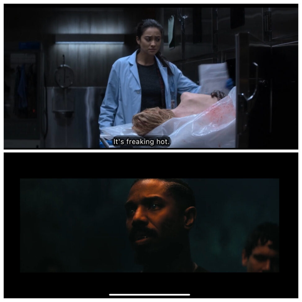 The pivotal point in Sinners is when a brother discovers that the evil tormenting their town is linked to their family’s past; the blood curse fueling the vampires originated from ancestral treachery. In The Possession of Hannah Grace, the pivotal point occurs when Megan, the former cop lead, barricades herself in the autopsy room with Hannah’s corpse, understanding that belief and determination, not firearms, will end the horror.